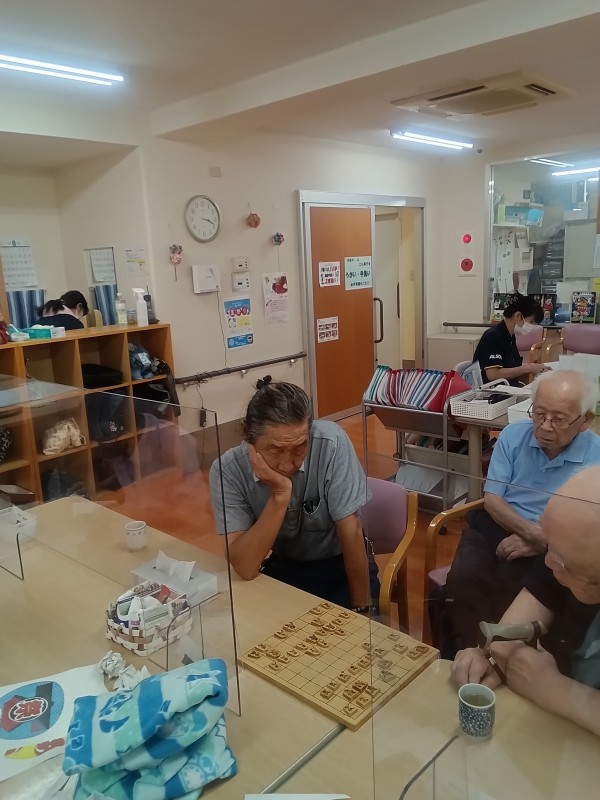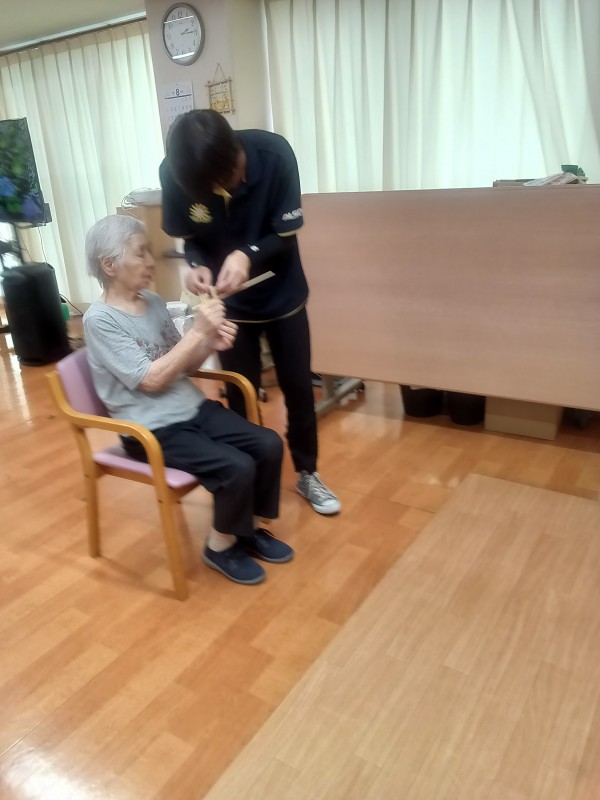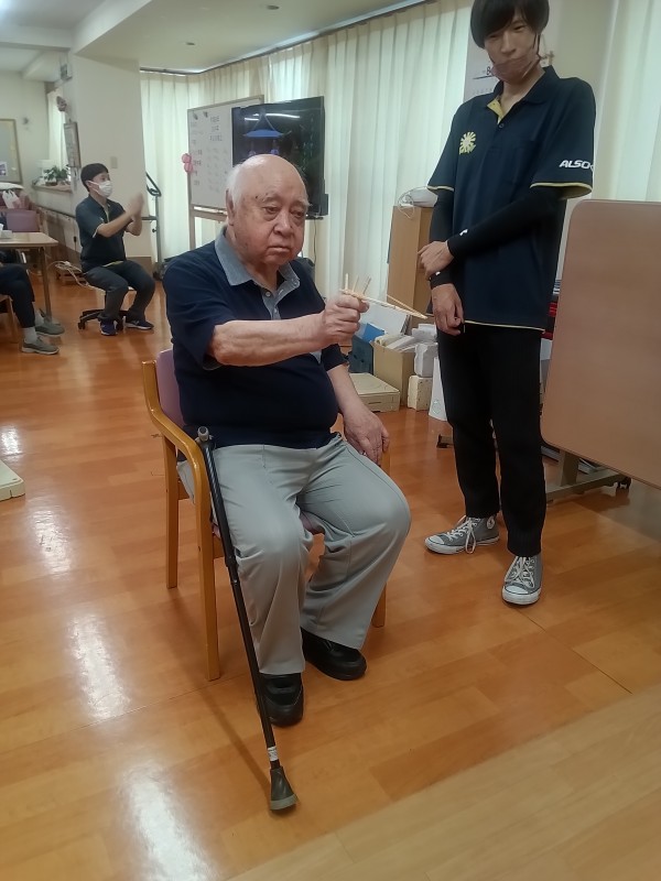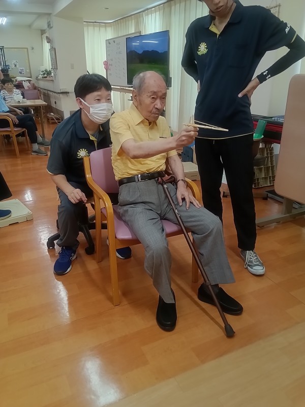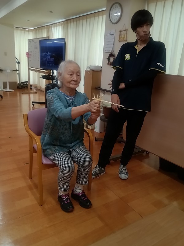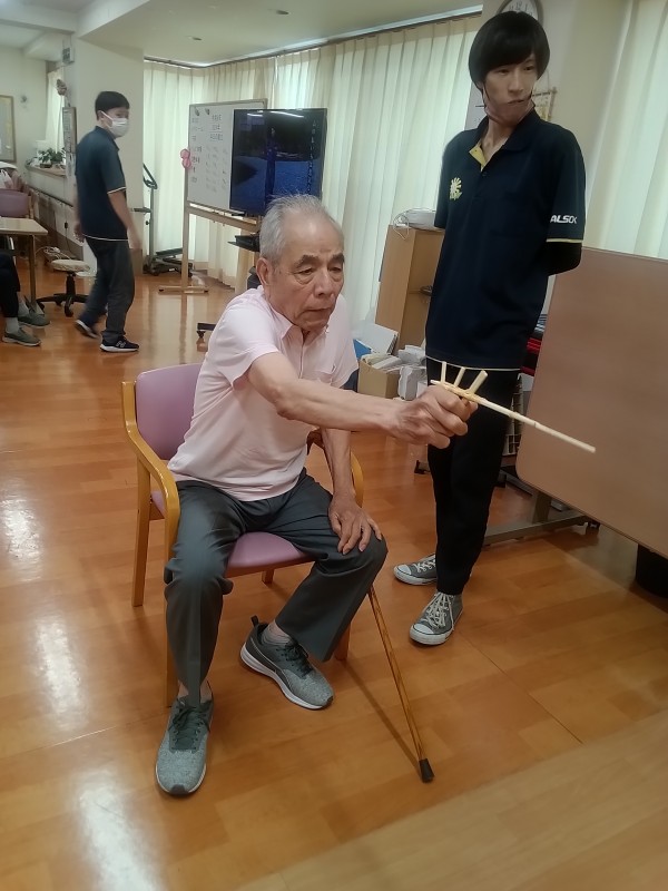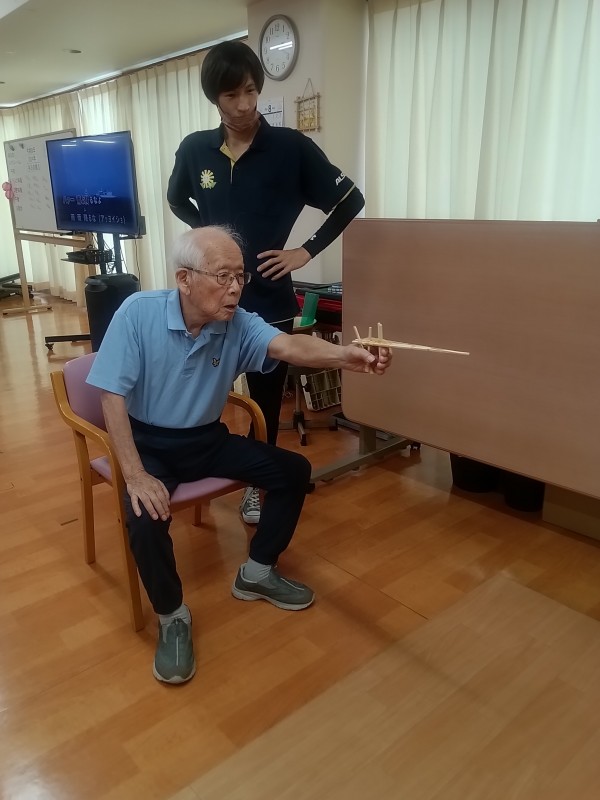 割りばし鉄砲を使って、1人4回的を狙っています。