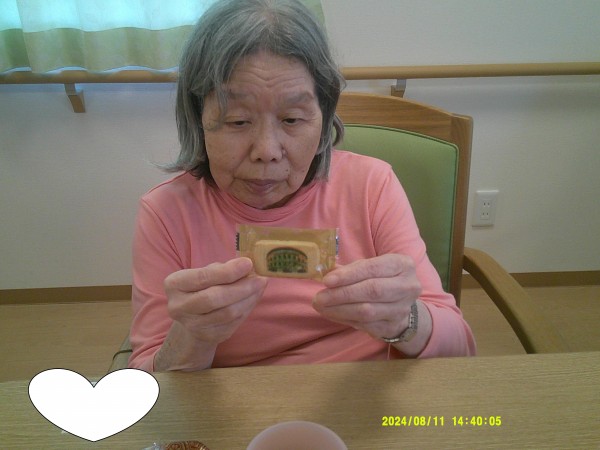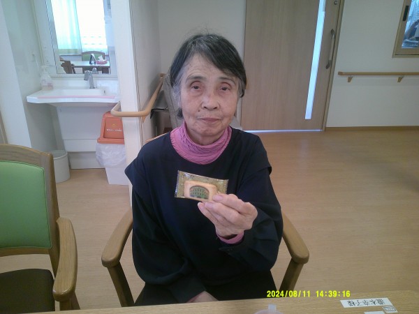 入居者様にお土産で甲子園クッキーをおやつに召し上がっていただきました。(^_-)-☆