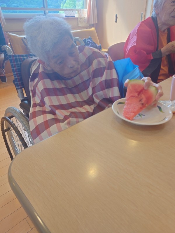 スイカをそのまま召し上がれない方にはジュースにしてお出ししましたが、ゴクゴクと美味しそうに飲まれていました(^^♪