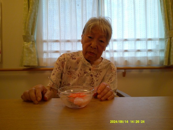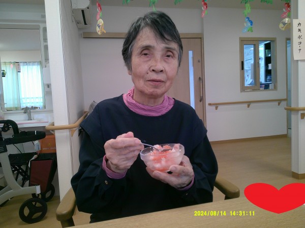 本日は夏祭りを行い、かき氷を召し上がっていただきました(^^♪