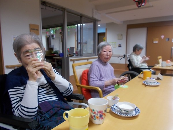 皆様、ニコニコしながらおやつを召し上がっています。
