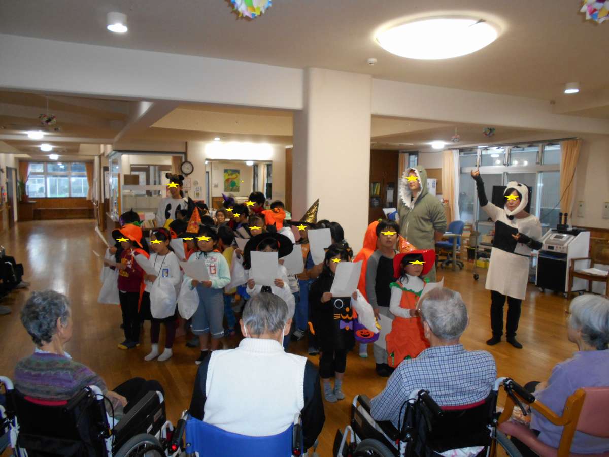 世間は大いにハロウィンで盛り上がっていたその頃、介護付有料老人ホームすこや家大宮日進には、ハロウィンの衣装に身を包んだ可愛いハロウィンキッズが大勢遊びに来てくれました。