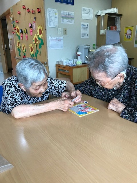 ご利用者様同士での取り組み姿やスタッフと一緒に参加されている姿は