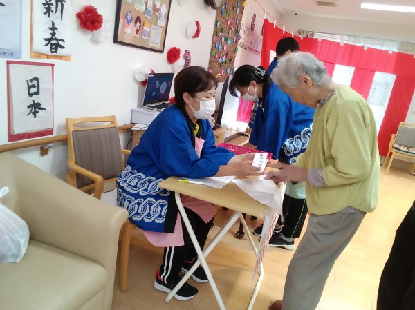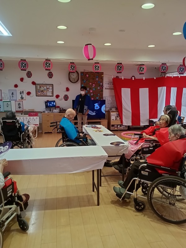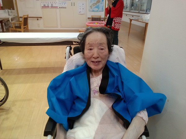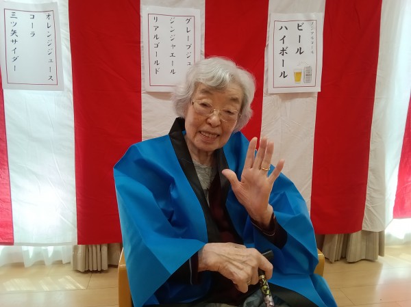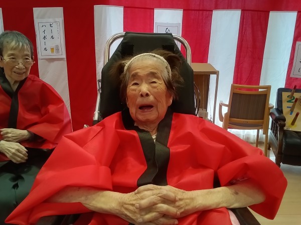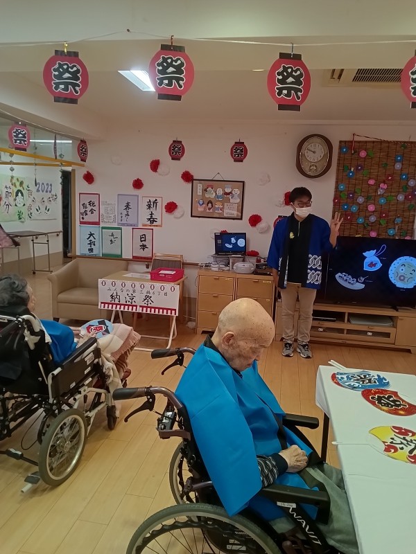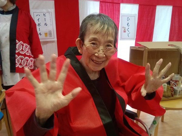 ご利用者様も祭りの雰囲気で夏祭りの法被はっぴを羽織る