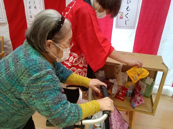 午前中は紐ひもくじ・輪投げ・射的・ヨーヨーすくいレクリエーション!(^^)!
