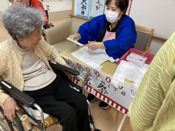 ご利用者様も祭りの雰囲気で夏祭りの法被はっぴを羽織る