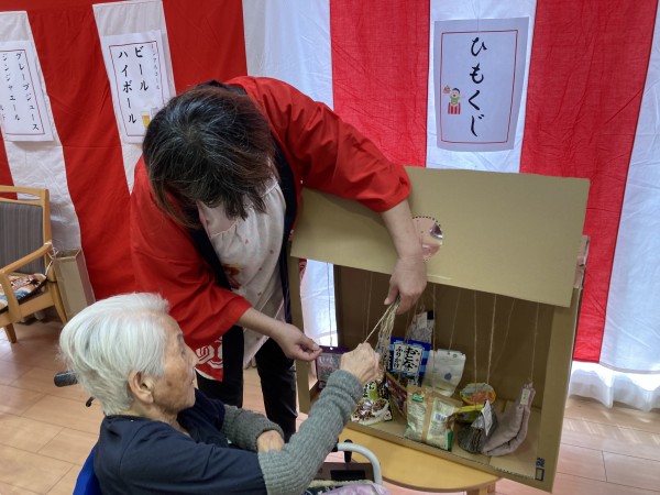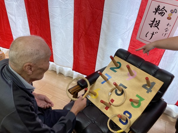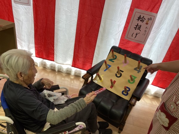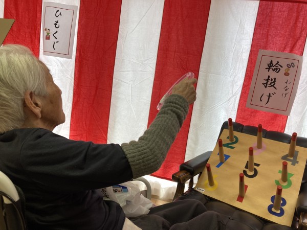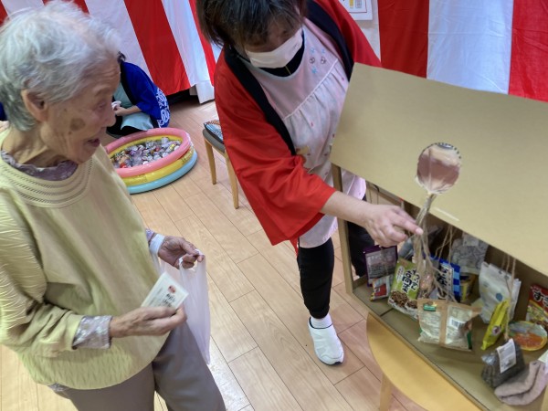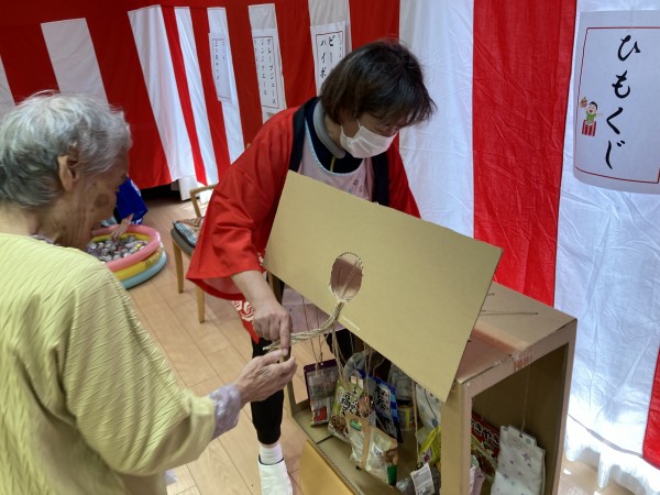午前中は紐ひもくじ・輪投げ・射的・ヨーヨーすくいレクリエーション!(^^)!