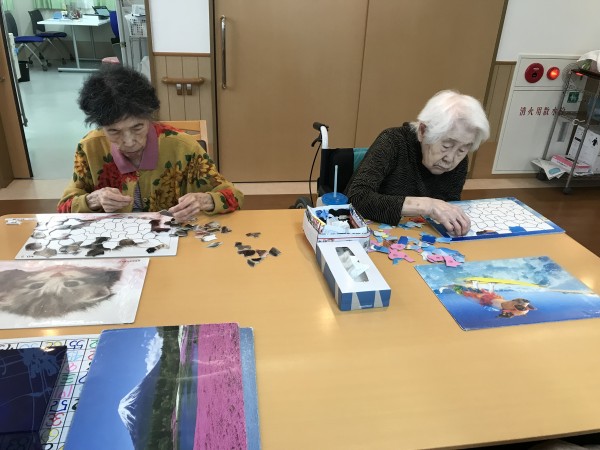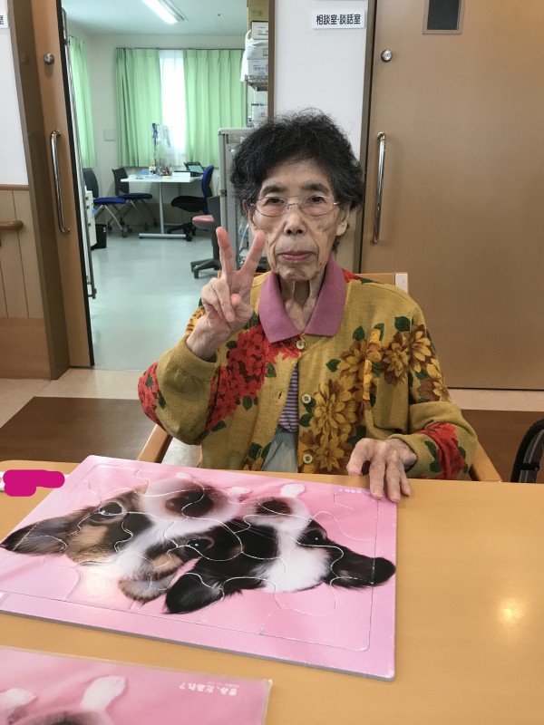 今回は、入居時文字盤で会話・車椅子使用だった方が、シルバーカー歩行・言葉での会話までADLが回復し、さらにパズルを完成させるスピードが激早なご様子をご覧いただきたいと思います。