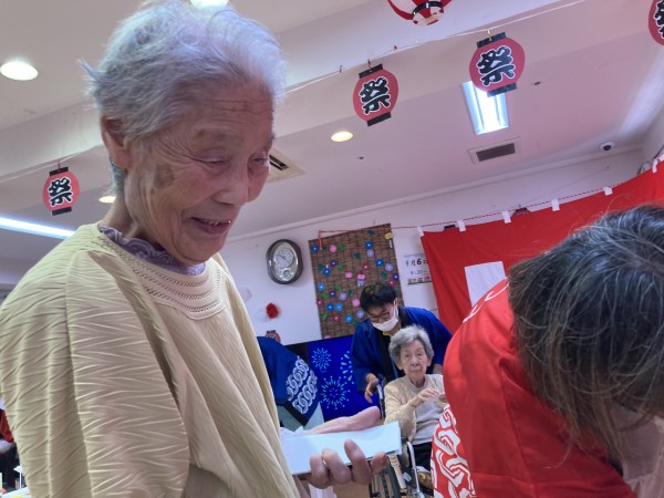ご利用者様も祭りの雰囲気で夏祭りの法被はっぴを羽織る