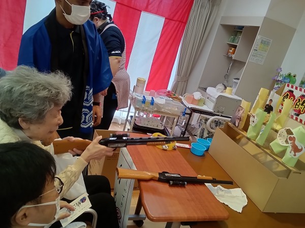 ★☆納涼祭・夏イベント射的ゲーム・ヨーヨー釣りレクリエーション③階2024年✨ 『みんなの家 三橋6丁目 介護ブログ』☆★