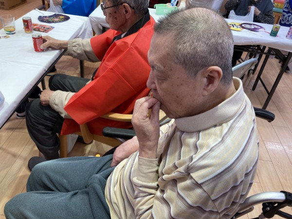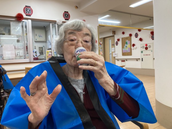 ご利用者様も祭りの雰囲気で夏祭りの法被はっぴを羽織る