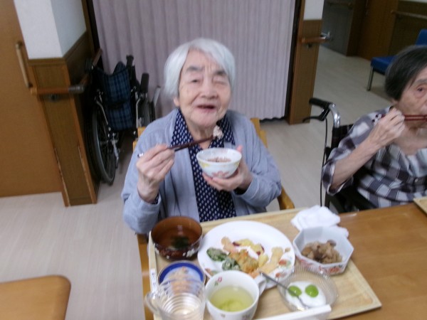 本日は敬老の日ということで昼食にお赤飯と天ぷらをご用意いたしました。