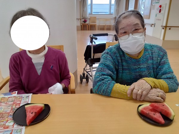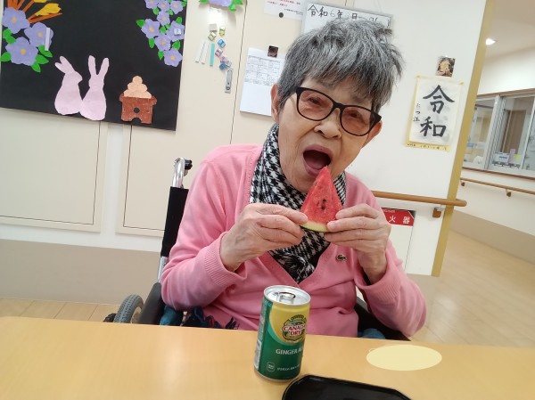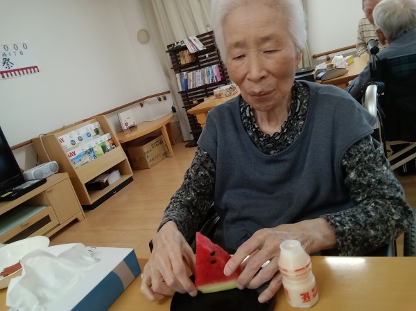 ★☆スイカ西瓜真夏の美味納涼祭・夏おやつレクリエーション②階2024年✨ 『みんなの家 三橋6丁目 介護ブログ』☆★