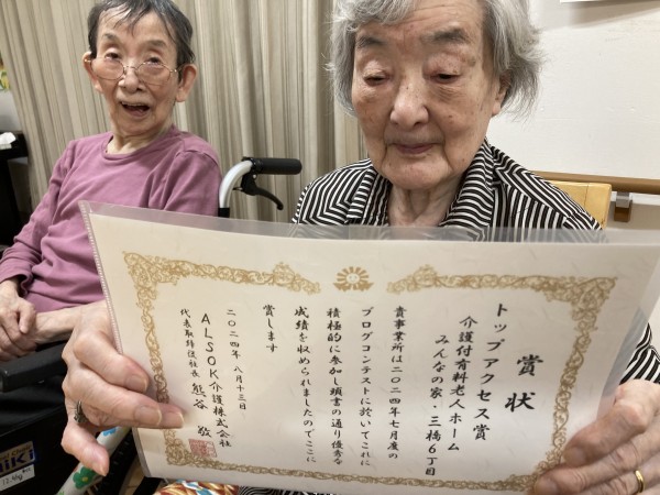 ★☆三橋6丁目がトップアクセス賞で賞状授与♪優秀な成績を収められたのでここに賞します2024年✨ 『みんなの家 三橋6丁目 介護ブログ』☆★