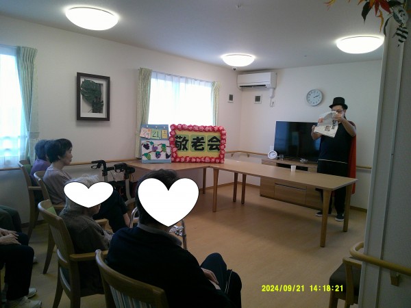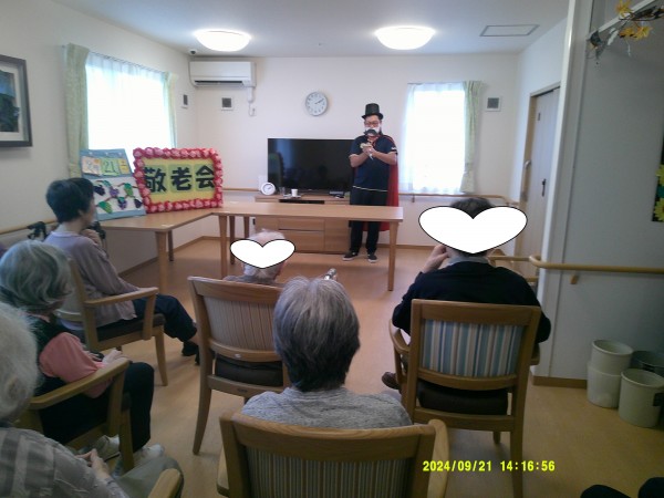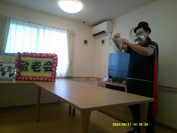 敬老会にて職員の手品ショーを披露をし、盛大に盛り上がったと思います。
