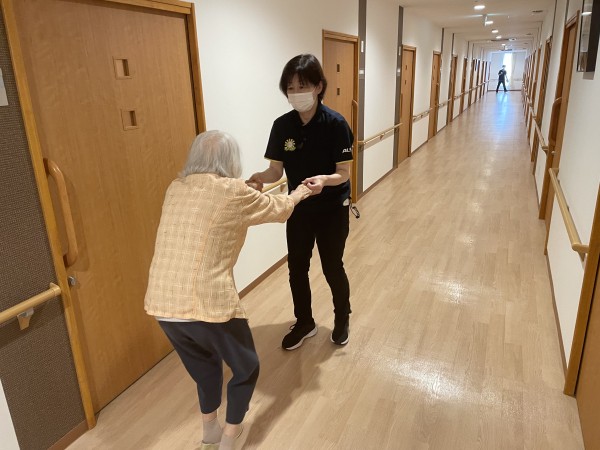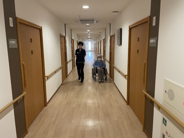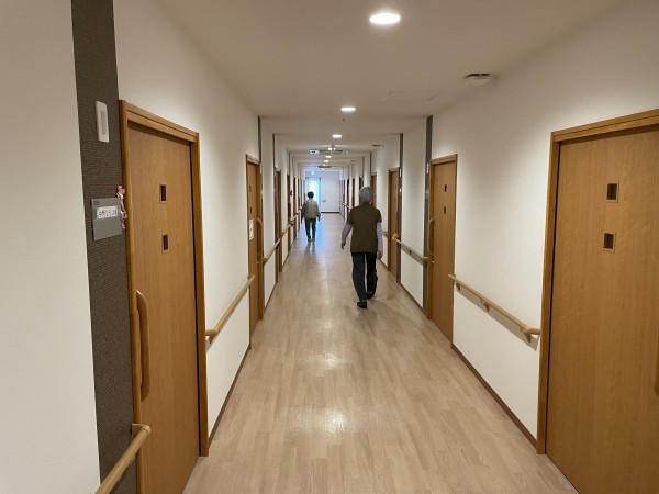 この長い廊下を歩き足腰の運動をしている方やリハビリなどで使っている方が多数いらっしゃる廊下です。
