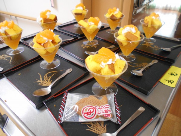 カステラにホイップクリームにみかん、パフェみたいですね♪