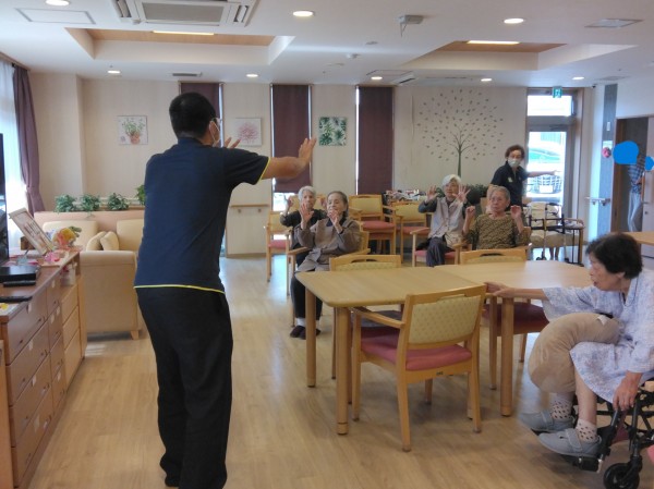 最初は、恥ずかしがって、なかなか声がでない入居者様も続けていくうちに、声を出してくれるようになりました。