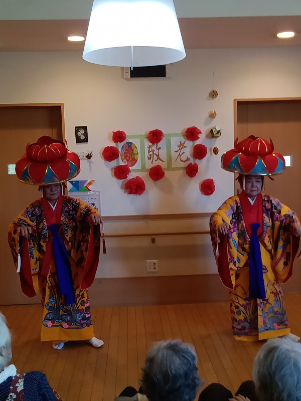 敬老会に沖縄舞踊のボランティアさんにお越しいただきました。