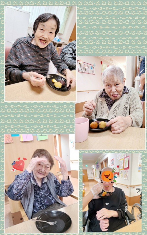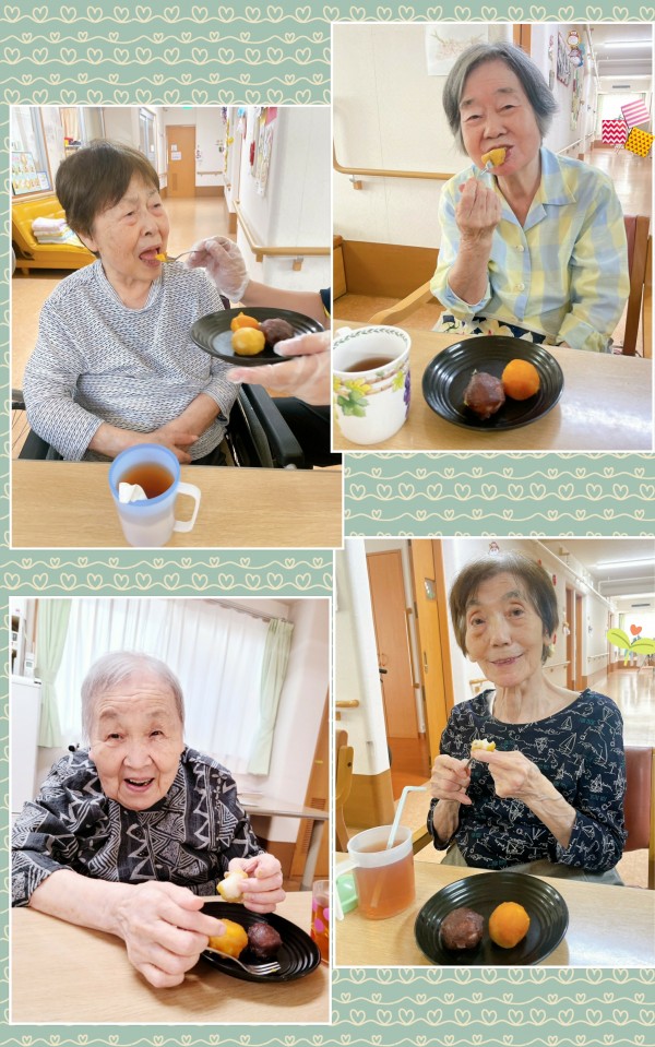 2階の9月おやつレクは、こし餡・かぼちゃ餡・さつま芋餡と3種類のあんこを使って