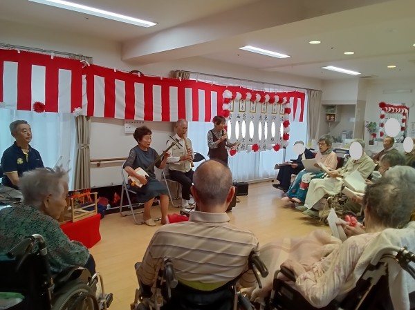 ご利用者様の皆様も三味線に合わせて大合唱♪