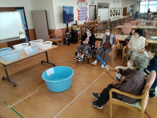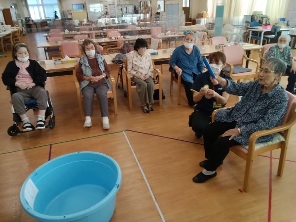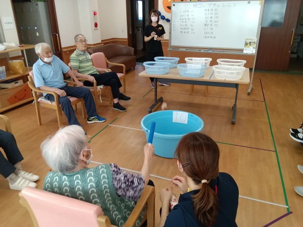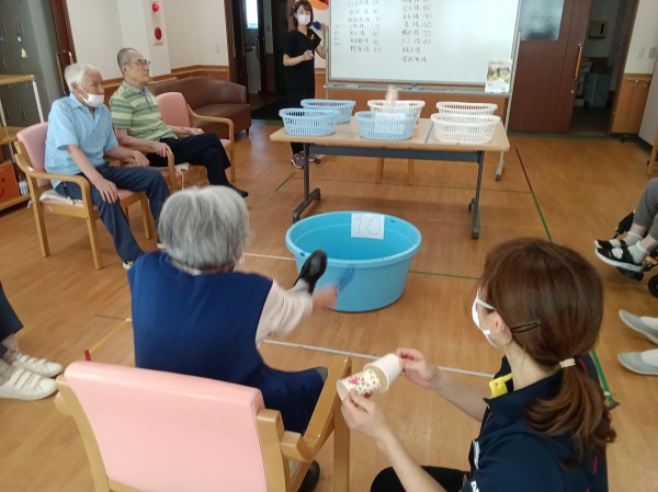 10月2日のレクリエーションは、紙コップチャレンジでした。