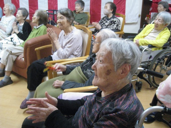 蕨音頭や東京音頭、ソーラン節や童謡まで幅広く歌って下さり、入居者様も一緒になって大きな声で歌って鳴り子をならしてくださいました♪