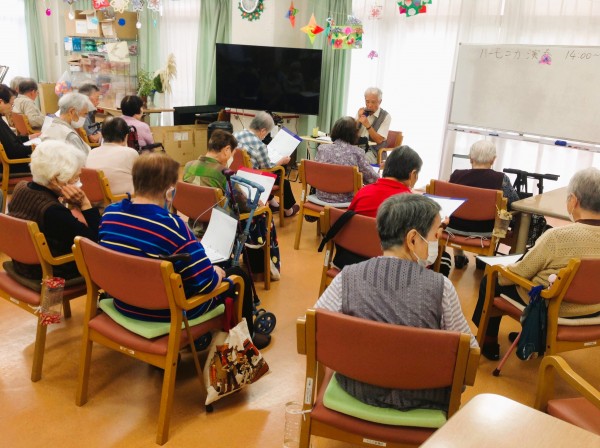 早速ハーモニカ演奏のスタートです♪懐かしのメドレーとともに、歌える人は歌っていきました♪