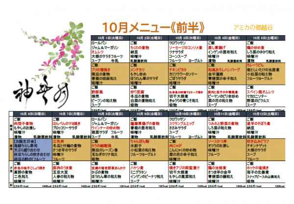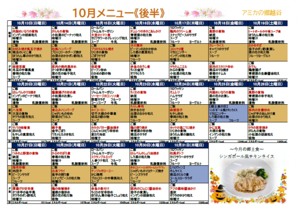 10月の献立表