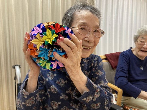 ★☆折り紙立体くす玉伝承作りレクリエーション②脳が活性認知症予防2024年✨ 『みんなの家 三橋6丁目 介護ブログ』☆★