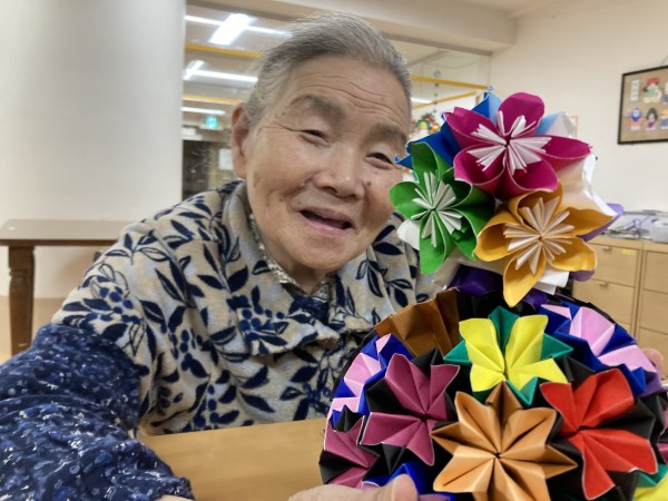★☆折り紙立体くす玉伝承作りレクリエーション④脳が活性認知症予防2024年✨ 『みんなの家 三橋6丁目 介護ブログ』☆★
