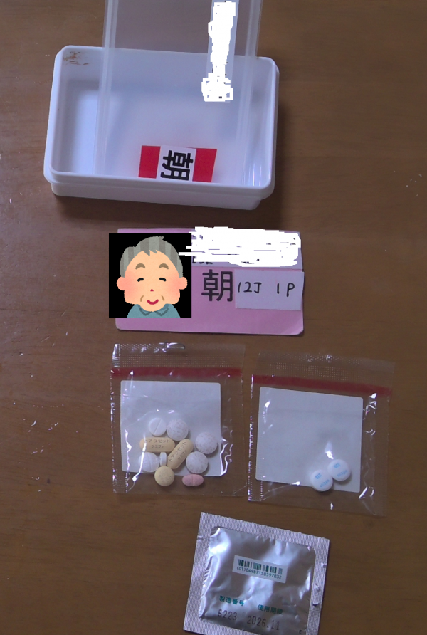 朝・昼・夕の食後薬を服用していただく際、2人の職員でご利用者様の『氏名、日付、錠数』を確認してから、服用していただいています。