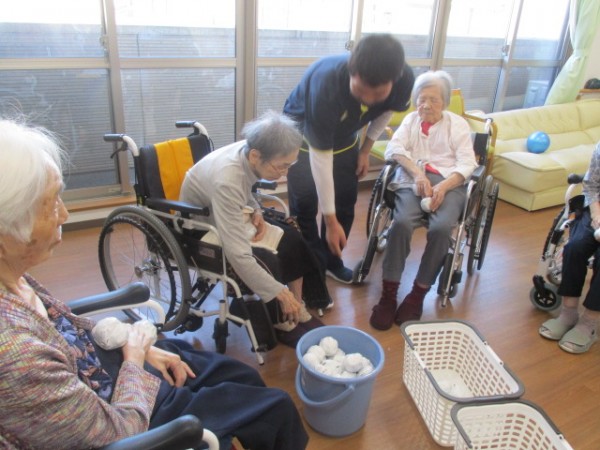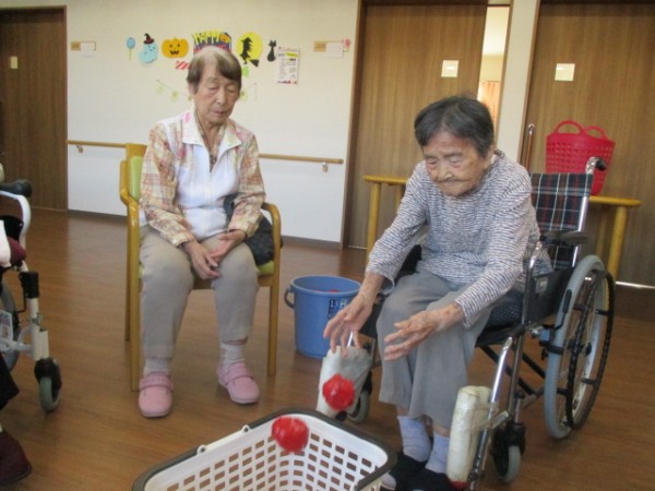 こんにちは! グループホームみんなの家・あきがせの介護ブログです! よろしくお願いいたします! 今日は2階で運動会の玉入れを行いました。その時のご様子をお知らせいたします。