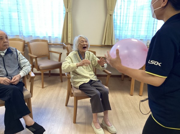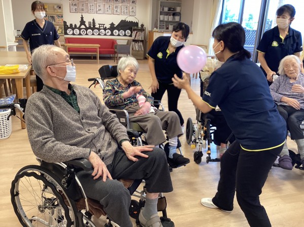 職員の応援で盛り上がり、ご利用者様も目いっぱい体を動かし、自然に笑顔になっていらっしゃいました。