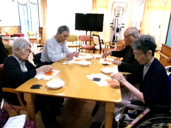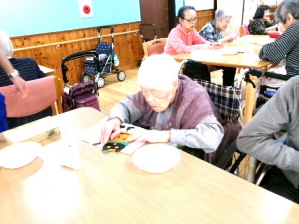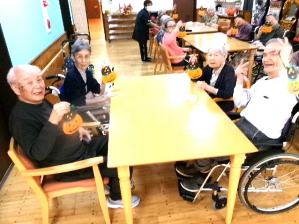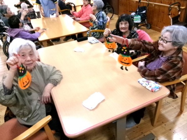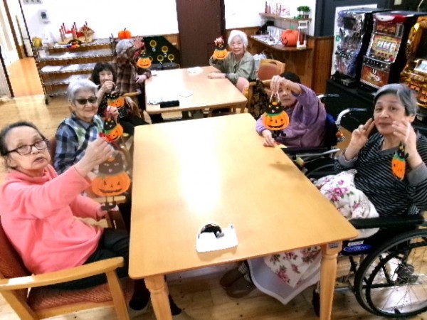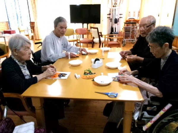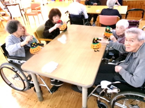 先日、入居者様にハロウィンの飾りを作成していただきました(*^▽^*)