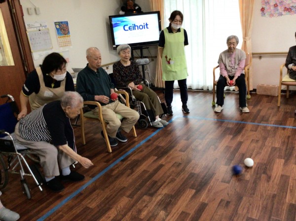 今月もボッチャレクの日が来ました(≧▽≦) 青組が2階、赤組が1階です!!