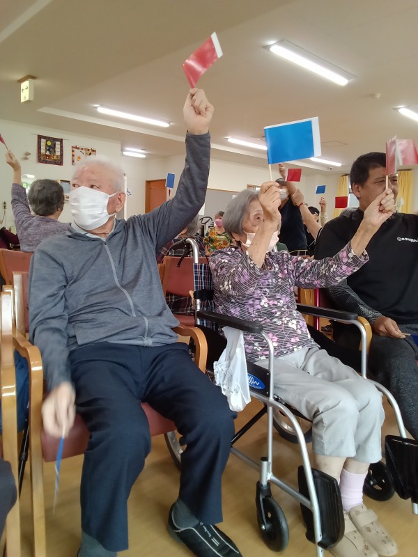 風船バレーはみんなで盛り上がりすぎて、「座ってくださーい!」と何度も職員に声をかけられておりました!だって真剣なんですよねえ(笑)