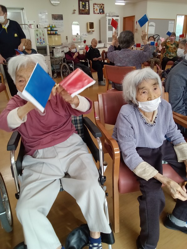 毎年行われるこの合同運動会ですが、今年は玉入れ、風船バレー、旗揚げを行いました(^^)/