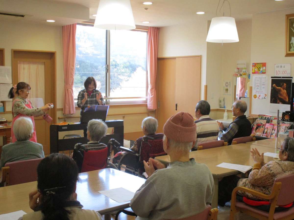 先日も、地域のボランテイアによる歌を唄えながらのリハビリ体操をしました。