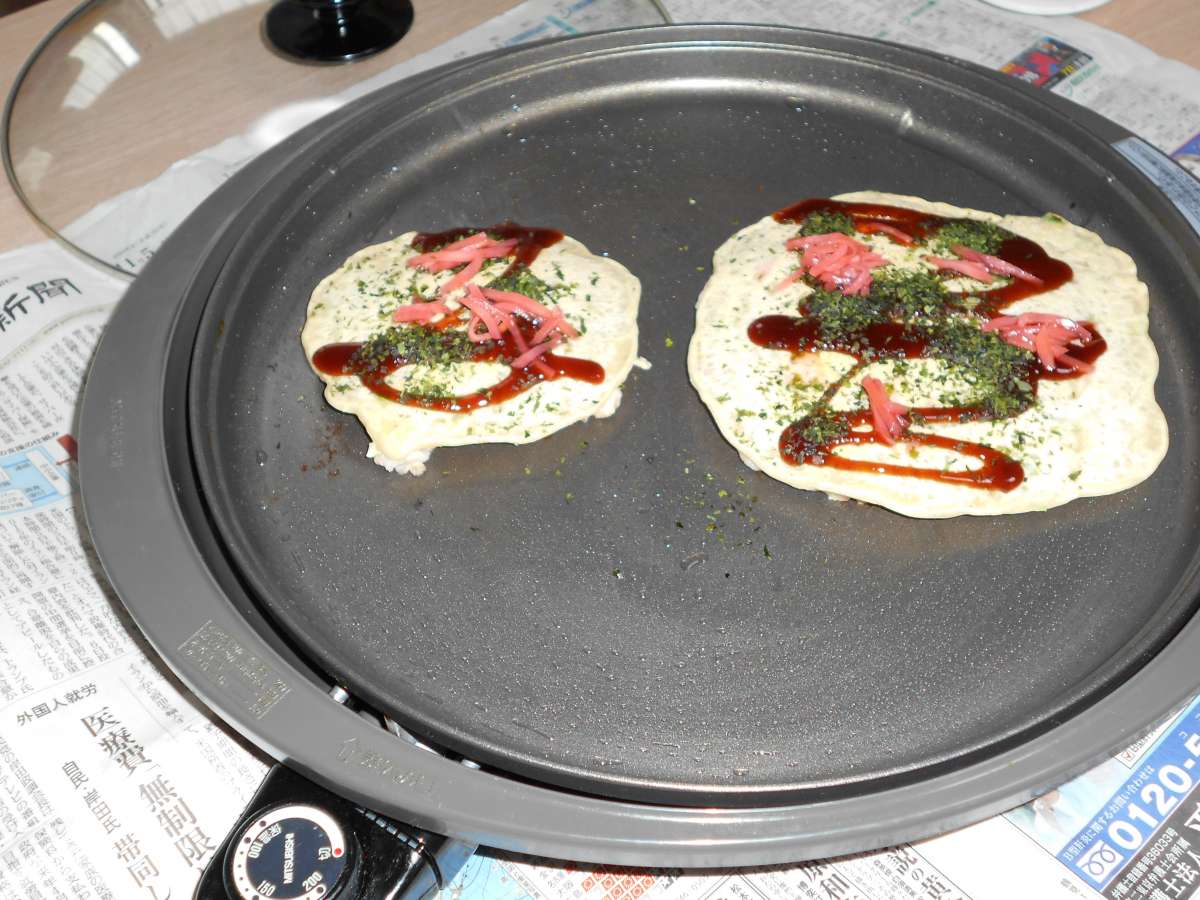 上手く返して上にソースや青のりを乗せてヽ(^o^)丿