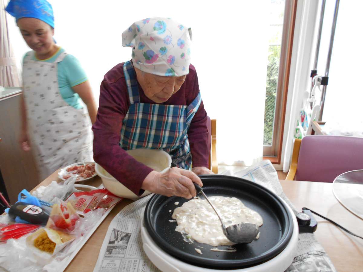 11月の1階おやつ作りにお好み焼きを作りました(^v^)