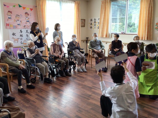 笑顔で皆さんをお迎えをしレクリエーションに参加していただきました♪