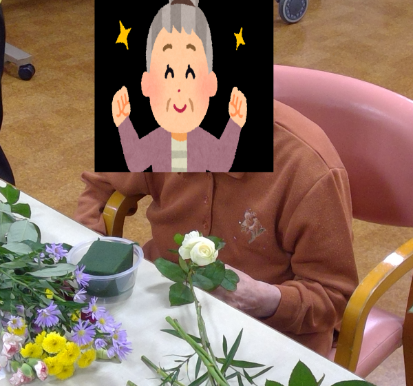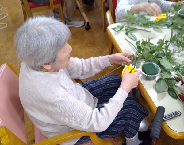 本日30日(水)、1階デイサービスにて「フラワーアレンジメント」があり、すこや家からも参加させていただきました。