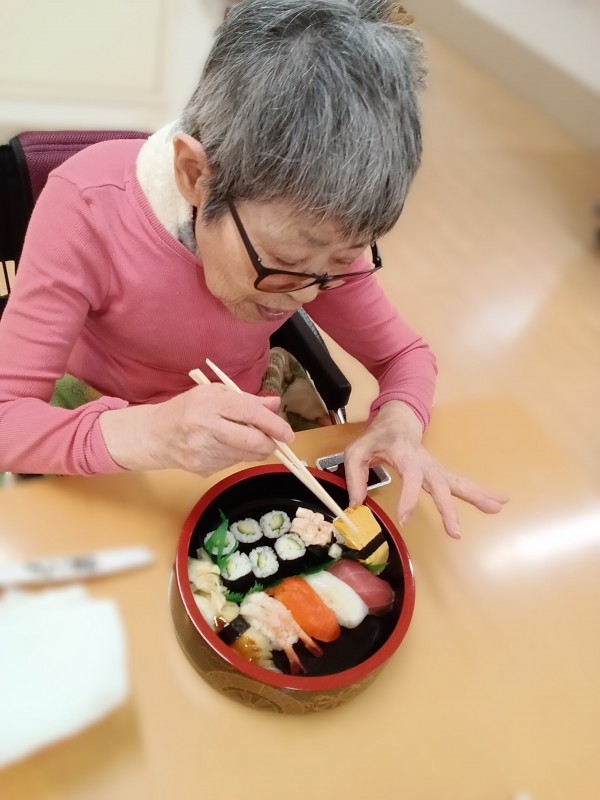 施設では、あまり食べれない特別に薩摩・握り寿司が提供されました。