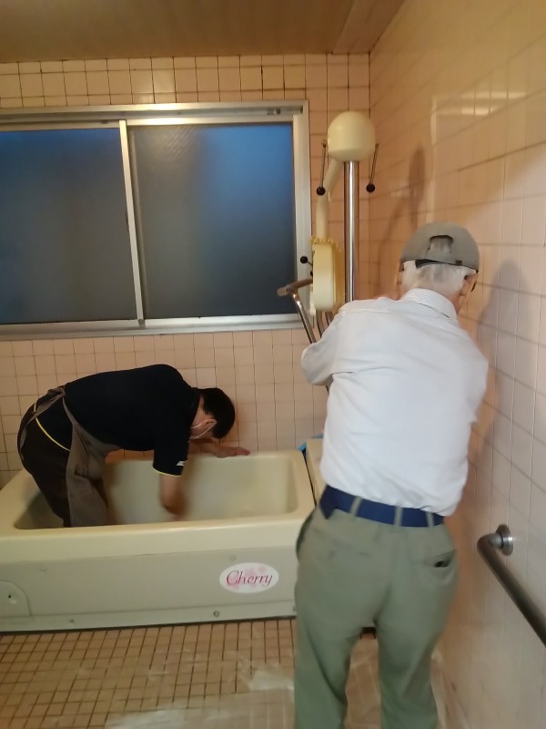 ということで、ご利用者様にお手伝いしていただき浴室の掃除をしました(^O^)/