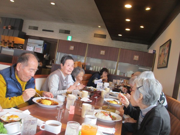 本日のお昼は【外食会】です。事前に申し込まれた方だけの外食会。今回はロイヤルホストさんです。コロナでずっとお休みしていた外食会。毎月お弁当を頼んでいましたが、出来立ての温かいお食事もいいよね~ということで復活しました。人気だったのはハンバーグランチ。お肉がお好きな方は元気な方が多いと聞きますが、まさにその通りだと納得いたしました。皆様、もりもりと完食されいい笑顔を見せてくださいました。事故なく安全に外出することができ、本当に良かったです。次回の外食会も楽しみですね♪