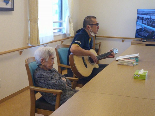 ギターで演奏する曲は、懐かしい昭和歌謡や童謡など、皆様に馴染みのある曲ばかり(^^)