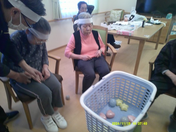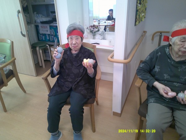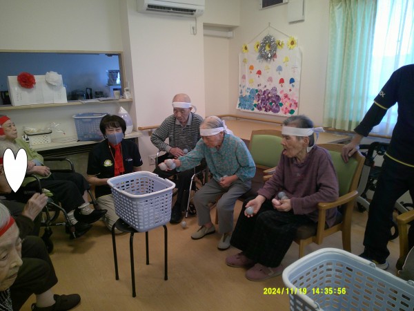 1階で入居者様皆様で運動会レクを行いました(^^♪