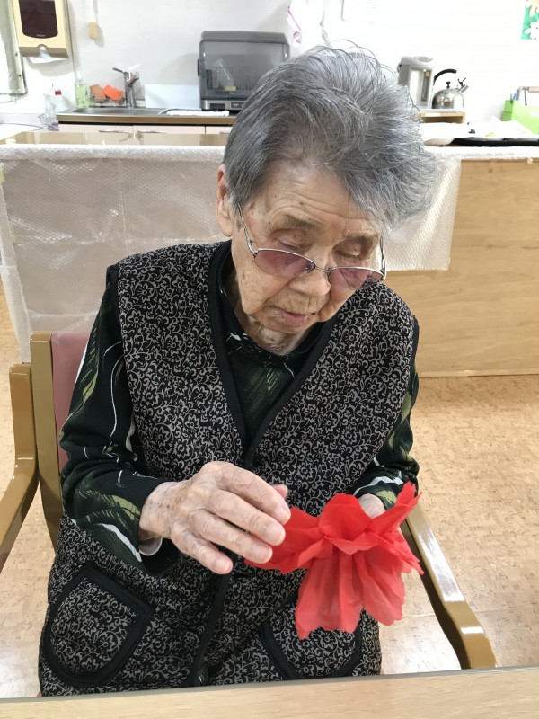 皆様にお花紙でたくさんお花を作っていただいております。