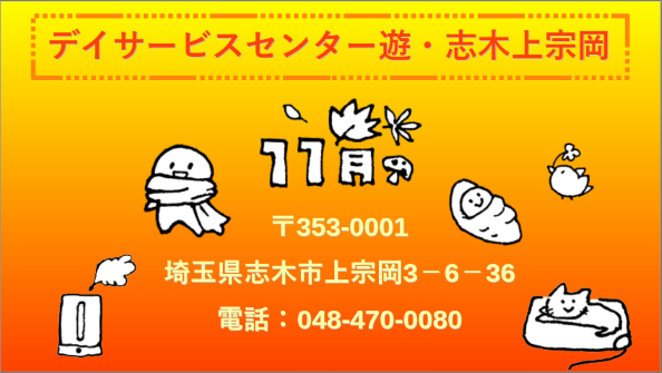 デイサービスセンター遊・志木上宗岡です。